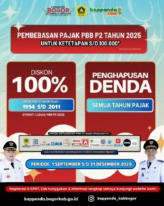 Dengan mengikuti program pembebasan pajak dan penghapusan denda ini, masyarakat turut berkontribusi nyata dalam membangun Kabupaten Bogor yang lebih maju dan sejahtera.