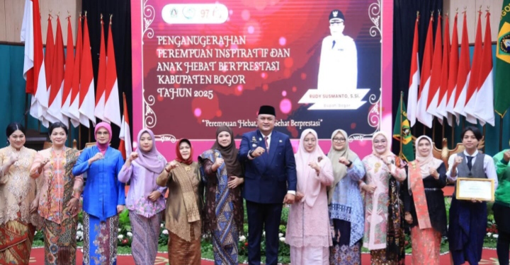 Bupati Bogor, Rudy Susmanto pimpin upacara peringatan Hari Ibu ke-97 tingkat Kabupaten Bogor, di Lapangan Tegar Beriman, Cibinong, Senin (22/12). Rudy menyampaikan arahan Menteri Pemberdayaan Perempuan dan Perlindungan Anak (PPPA) RI terkait peran strategis perempuan menuju Indonesia Emas 2045, bahwa kemajuan bangsa tidak pernah terpisah dari kemajuan perempuan.